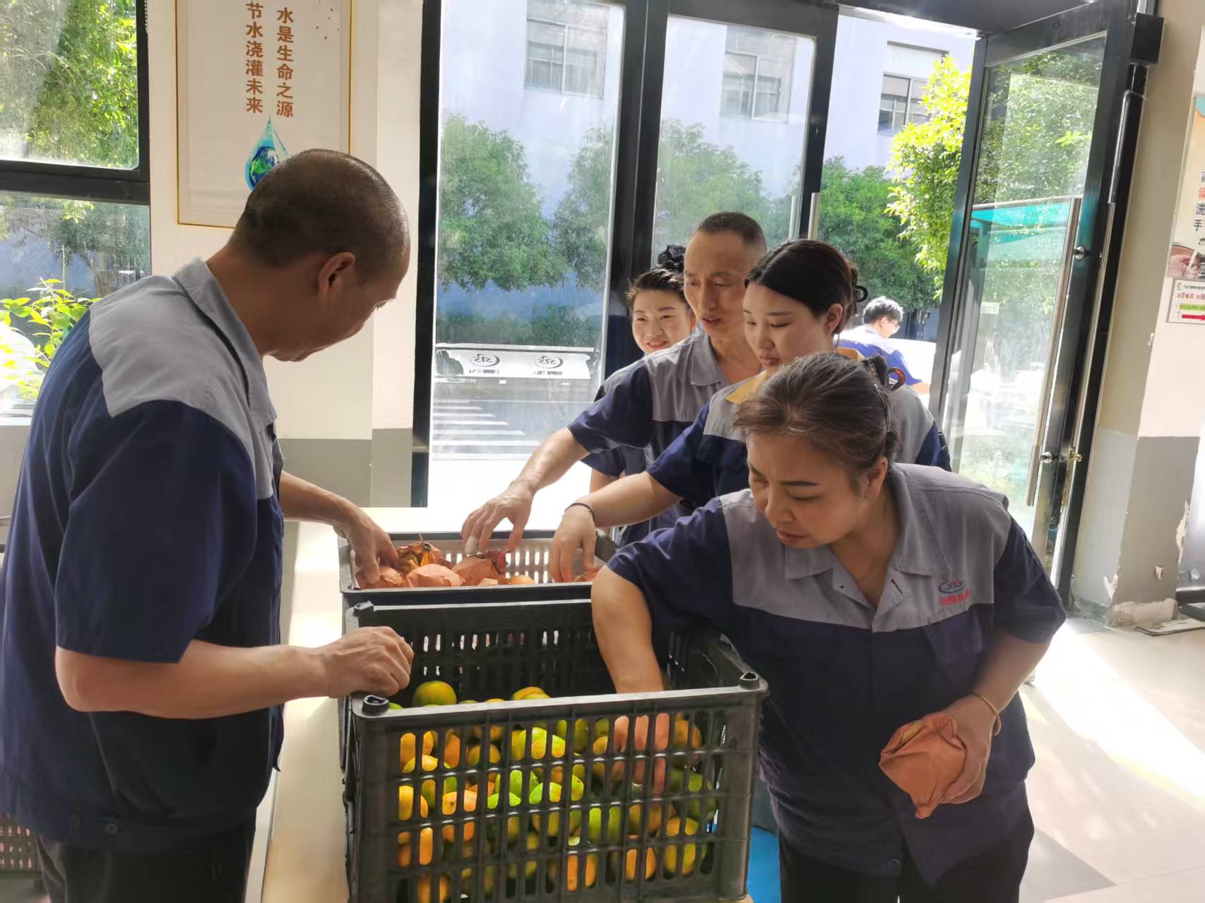 员工们接过水果时绽放的笑容,是这个秋天最动人的风景。一位车间老师傅感慨地说:“公司在天气最炎热的时候送来清凉,这份心意比水果更甜!”细微之处见真情,这份体贴入微的关怀让每位员工都真切感受到向隆大家庭的温暖。