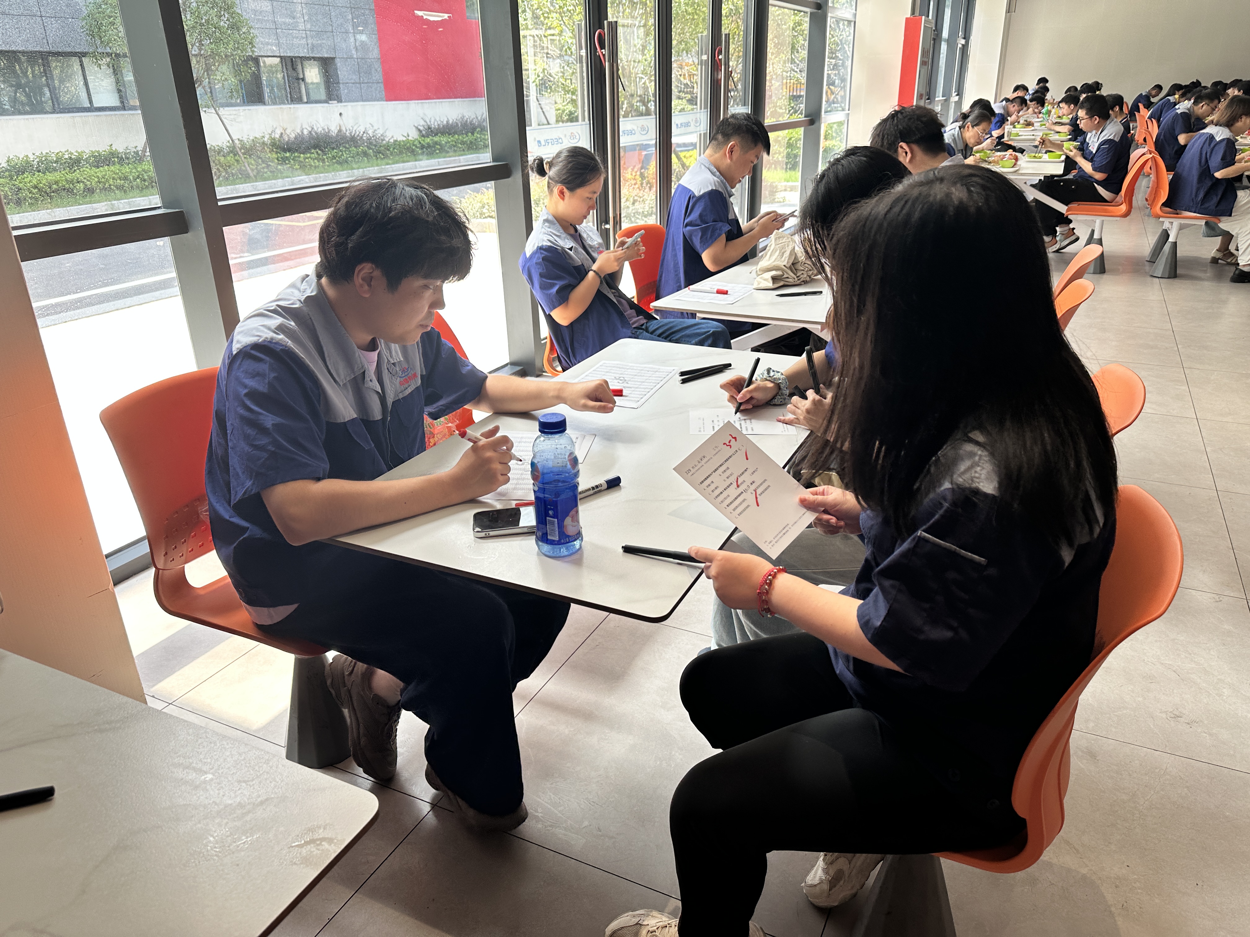 与此同时,二厂的知识竞赛同样开展得如火如荼。围绕“爱学习、爱工作、倡文化、助成长”的主题,三场竞赛内容涵盖产品知识、安全规范、操作规程及企业文化等方方面面。活动现场员工们积极参与,气氛热烈。