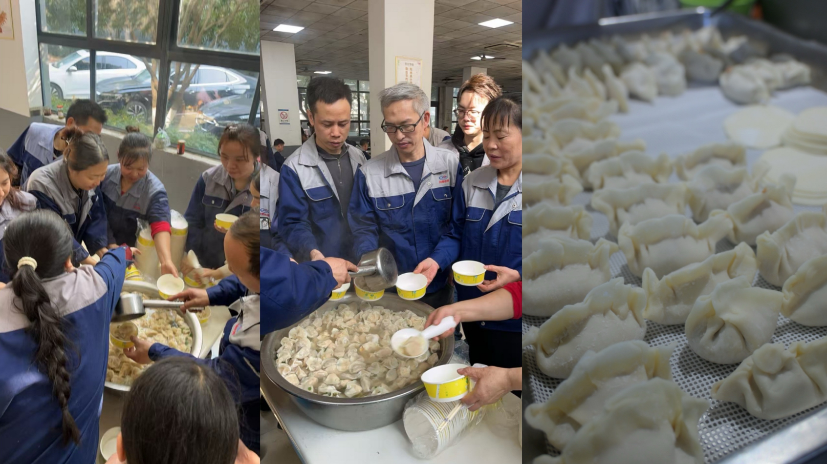 冬至,始终寄托着中国人对团圆与温暖的向往。为传递这份节日温情,并向全体员工一年来的辛勤付出致以谢意,公司工会与大学生俱乐部的储干们——早早便开始策划。他们精心准备了多款特色馅料:经典地道的猪肉大葱、酸爽开胃的酸菜猪肉、鲜甜饱满的虾仁猪肉……每一味都藏着巧思,兼顾南北风味,只为大家能吃出“家”的感觉。